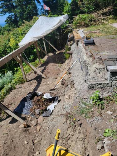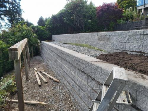 Structurally engineered retaining wall that was designed to hold the weight of a large deck attached directly to it. Followed the engineers plans accurately with scheduled in-person investigations periodically to continue. Proper application of geogrid, chimney drain and full drainage with PVC perforated piping.